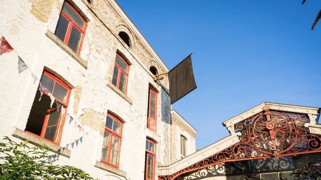 Our bicycle trip along the “Maas/Meuse” lead us through Liège and in front of this freshly squatted building. The group – between 20 and 30 both in numbers as in age – baptised this free space “Entre-Murs Entre-Mondes” (Between walls and between worlds). Their project is to transform the old brewery which has been empty for more then 10 years into a self governed social cultural centre. The owner doesn’t seem to be very corporative for the moment. There is an eviction threat but the collective of activists is resisting and stays in the building. All the support they can get is very welcome.
